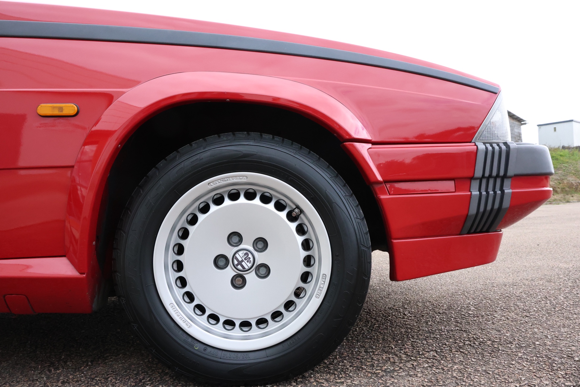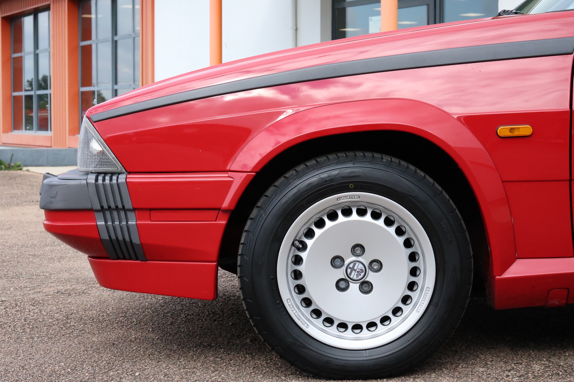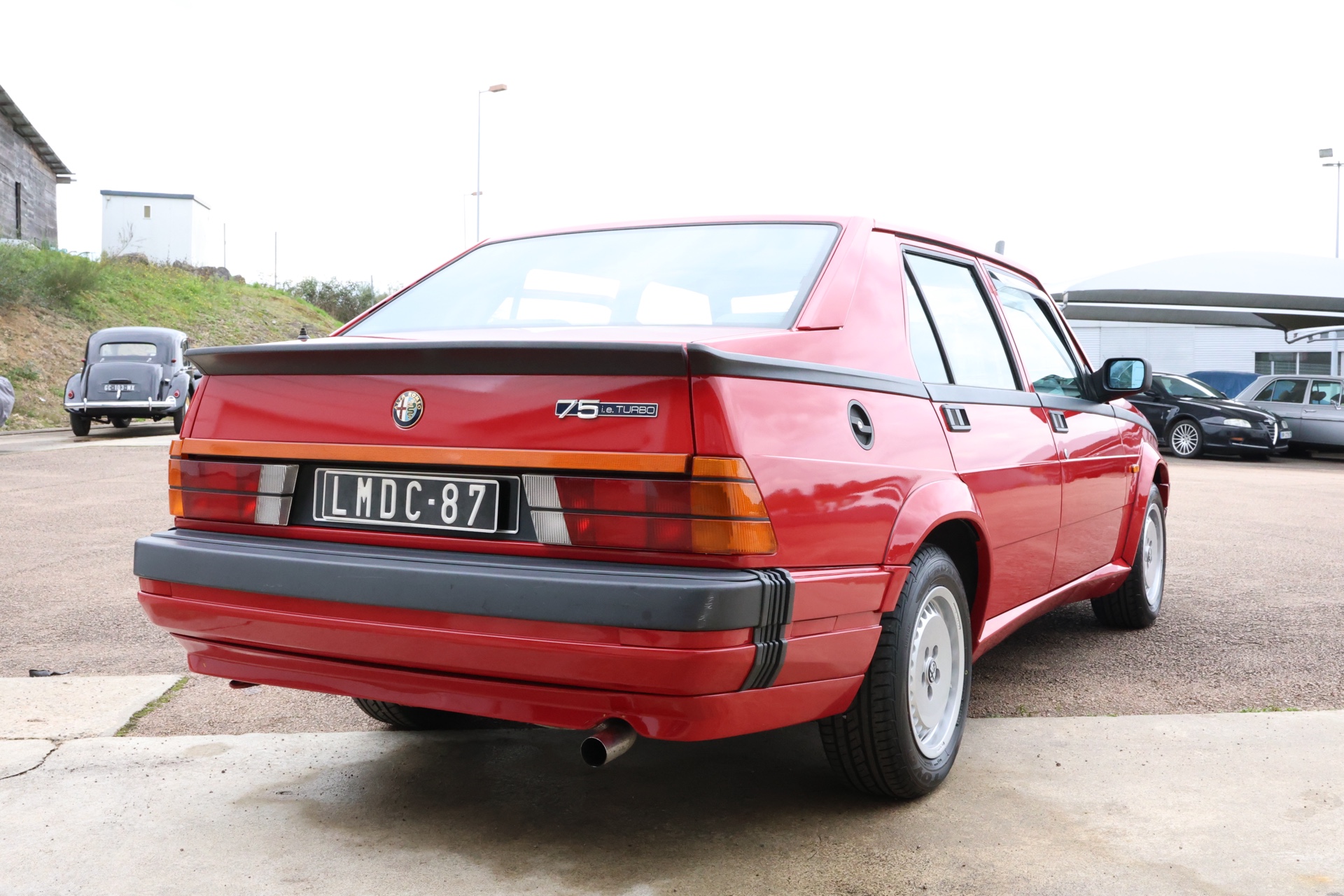 Cette Alfa Roméo 75ie Turbo, assez recherchée, a une ligne dynamique et sportive