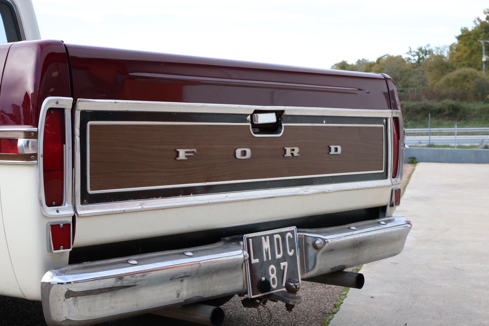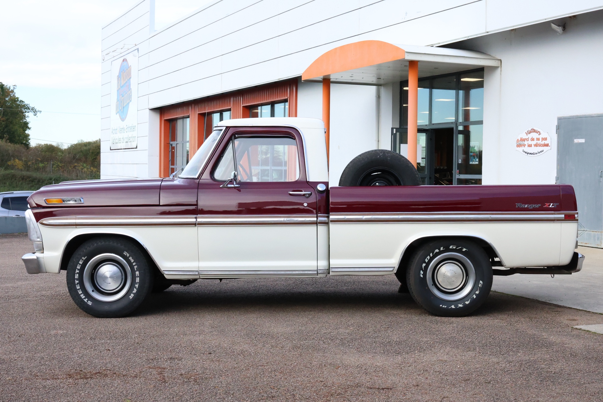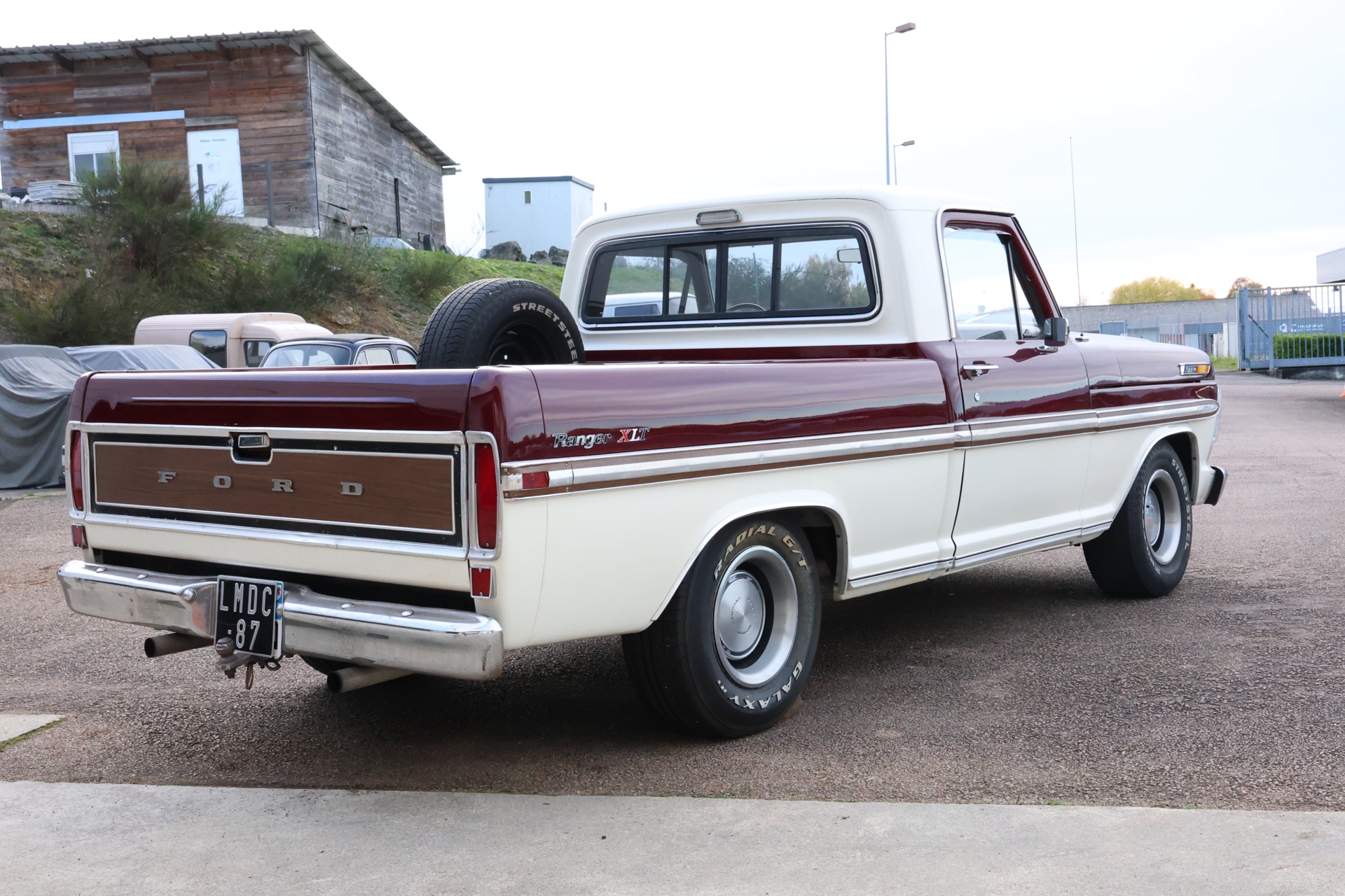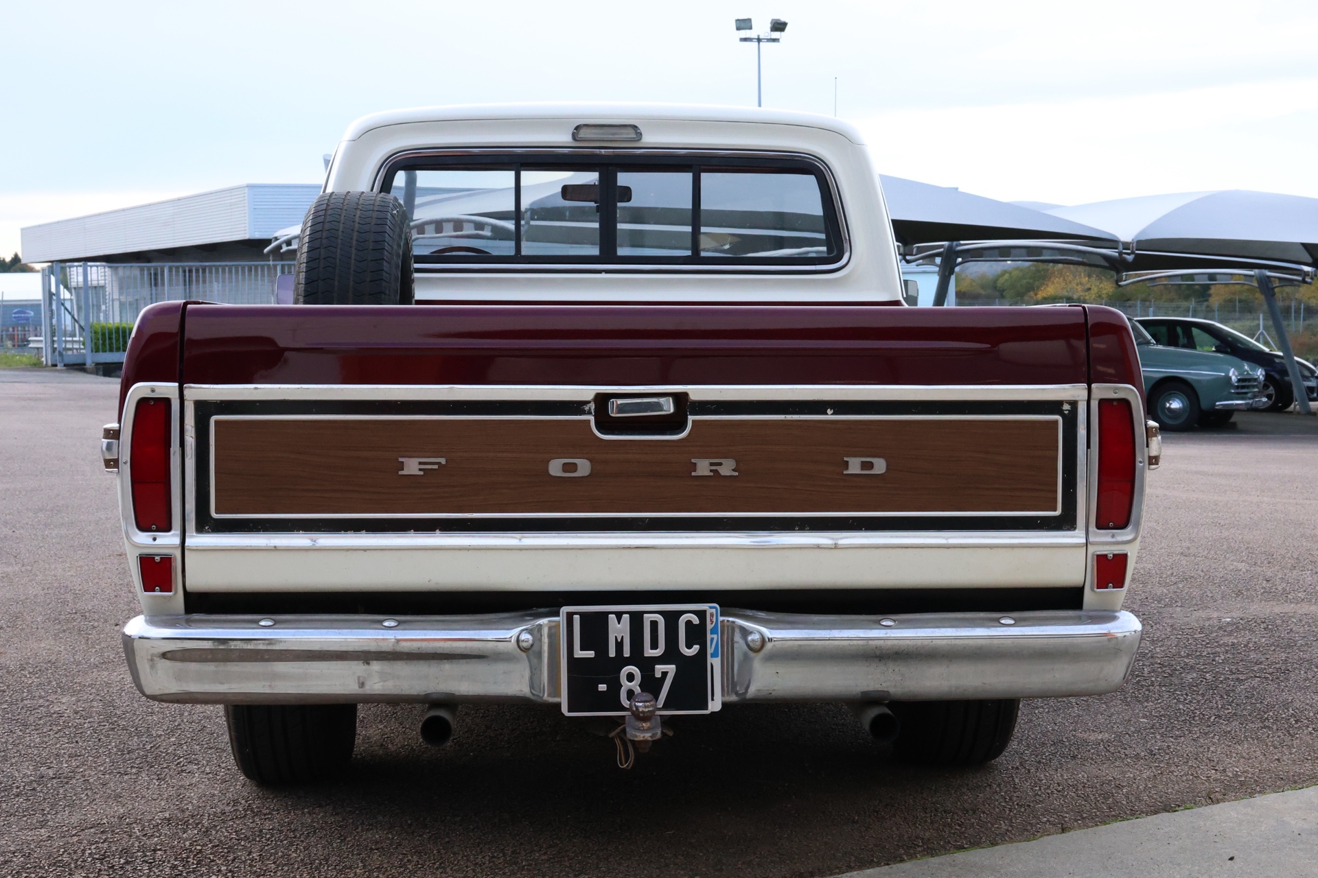 Je vous propose une légende née sur les routes d’Amérique, le Ford F100 pick-up ; des lignes anguleuses typiques des années 60-70 ; un habitacle très spacieux ; une carrosserie bicolore crème/bordeaux que l’on retrouve à l’intérieur, sur la banquette et panneaux de portes ; tout cela en parfaite harmonie
