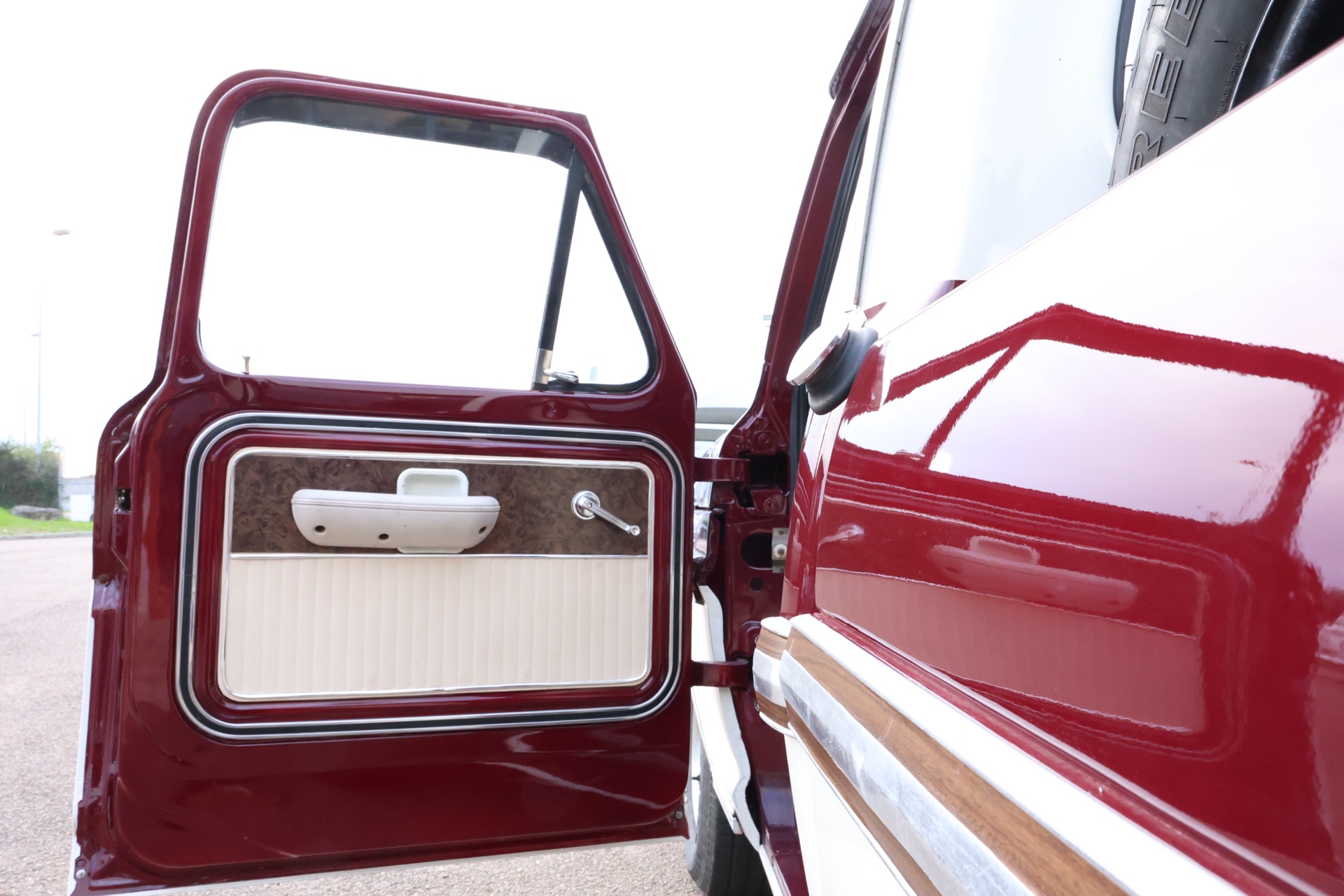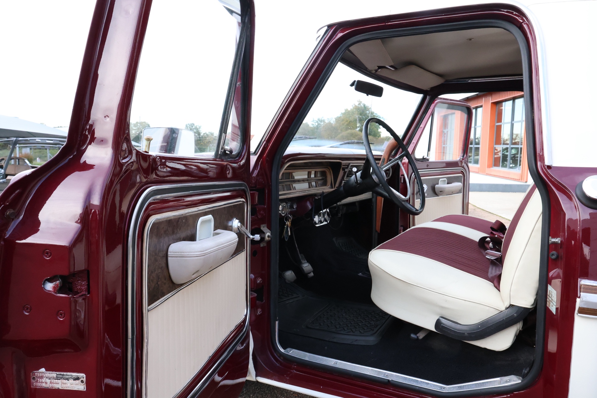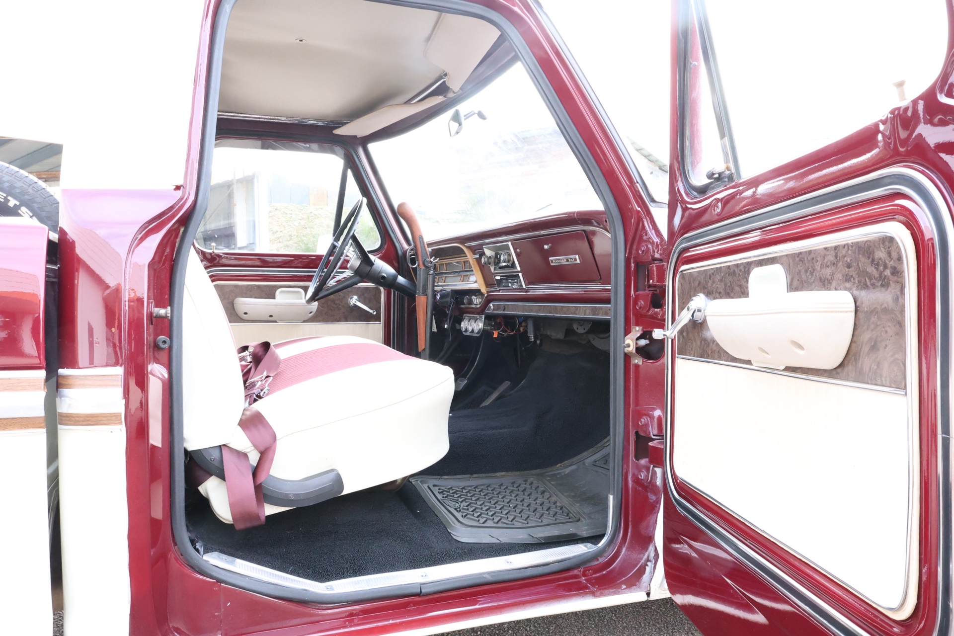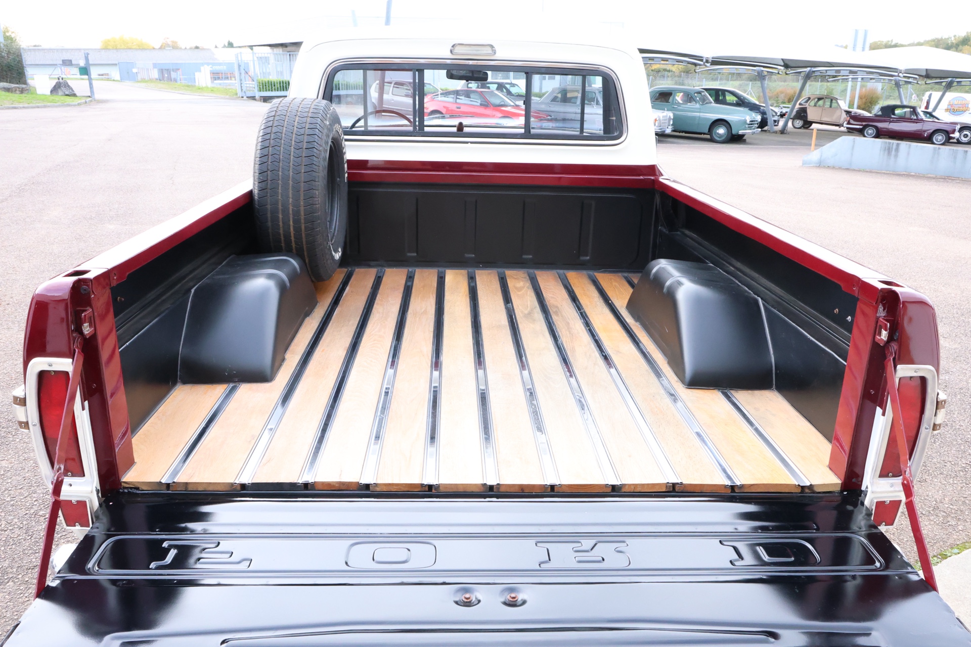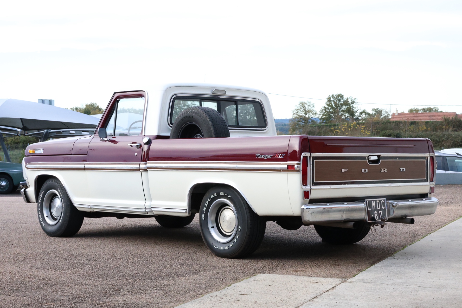 Je vous propose une légende née sur les routes d’Amérique, le Ford F100 pick-up ; des lignes anguleuses typiques des années 60-70 ; un habitacle très spacieux ; une carrosserie bicolore crème/bordeaux que l’on retrouve à l’intérieur, sur la banquette et panneaux de portes ; tout cela en parfaite harmonie