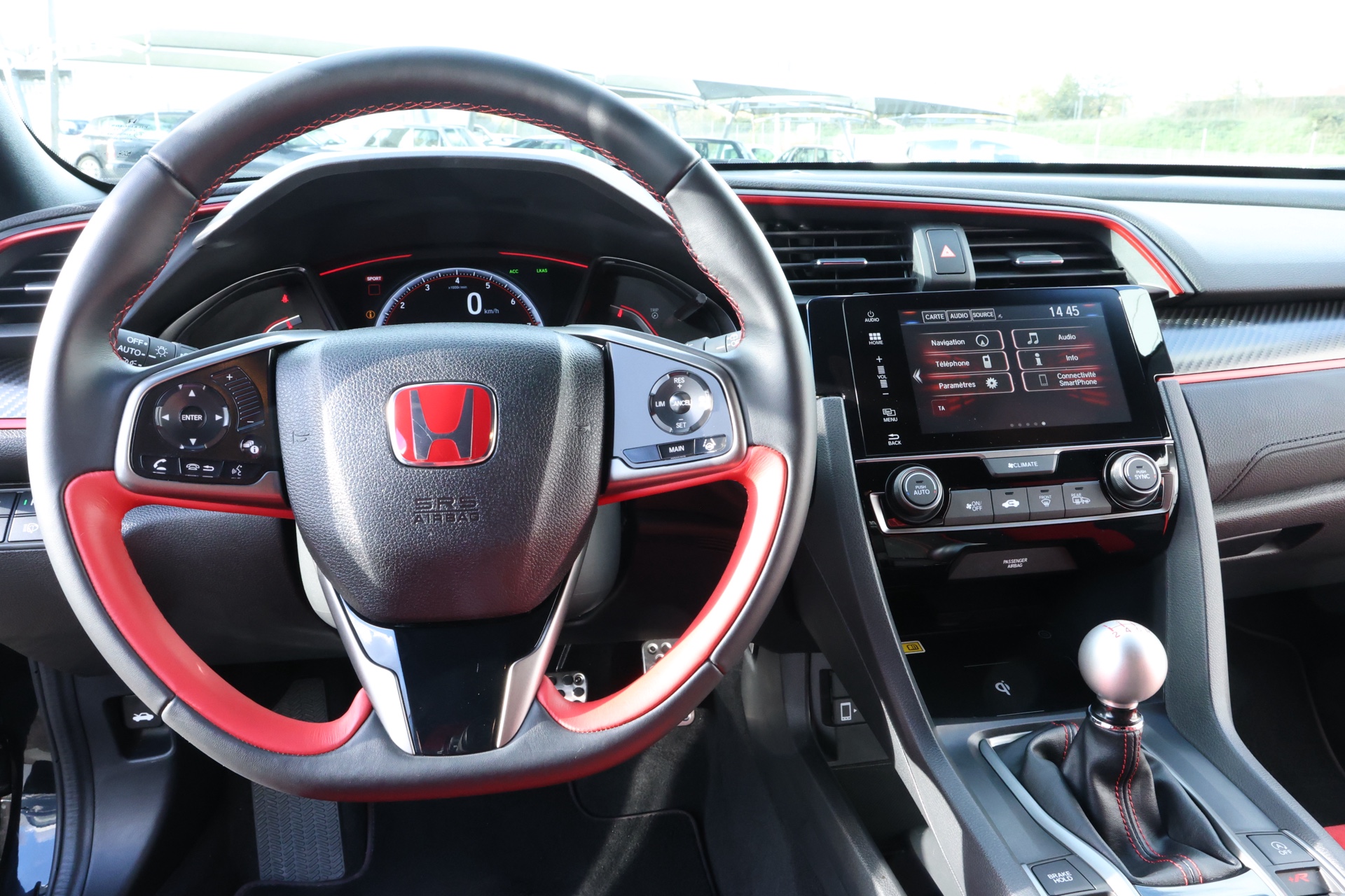 Un habitacle très soigné à l’ambiance sportive, avec des sièges baqués rouge et noir, un volant gainé cuir et une instrumentation digitale complète. Animée par un moteur 4 cylindres 2.0 VTEC Turbo, elle offre des performances exceptionnelles tout en restant utilisable au quotidien.