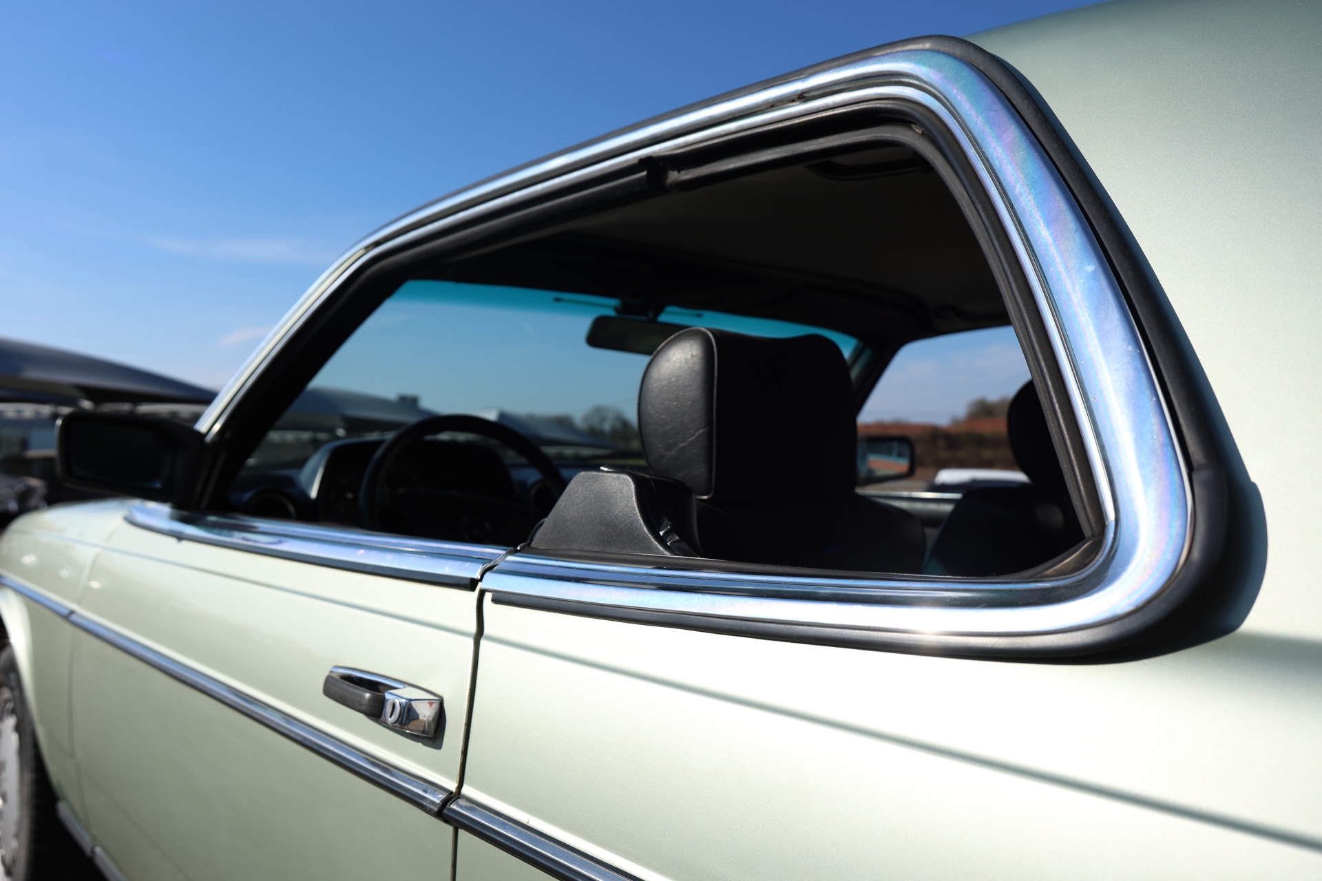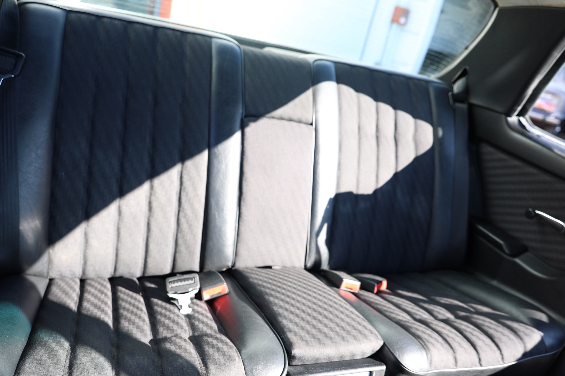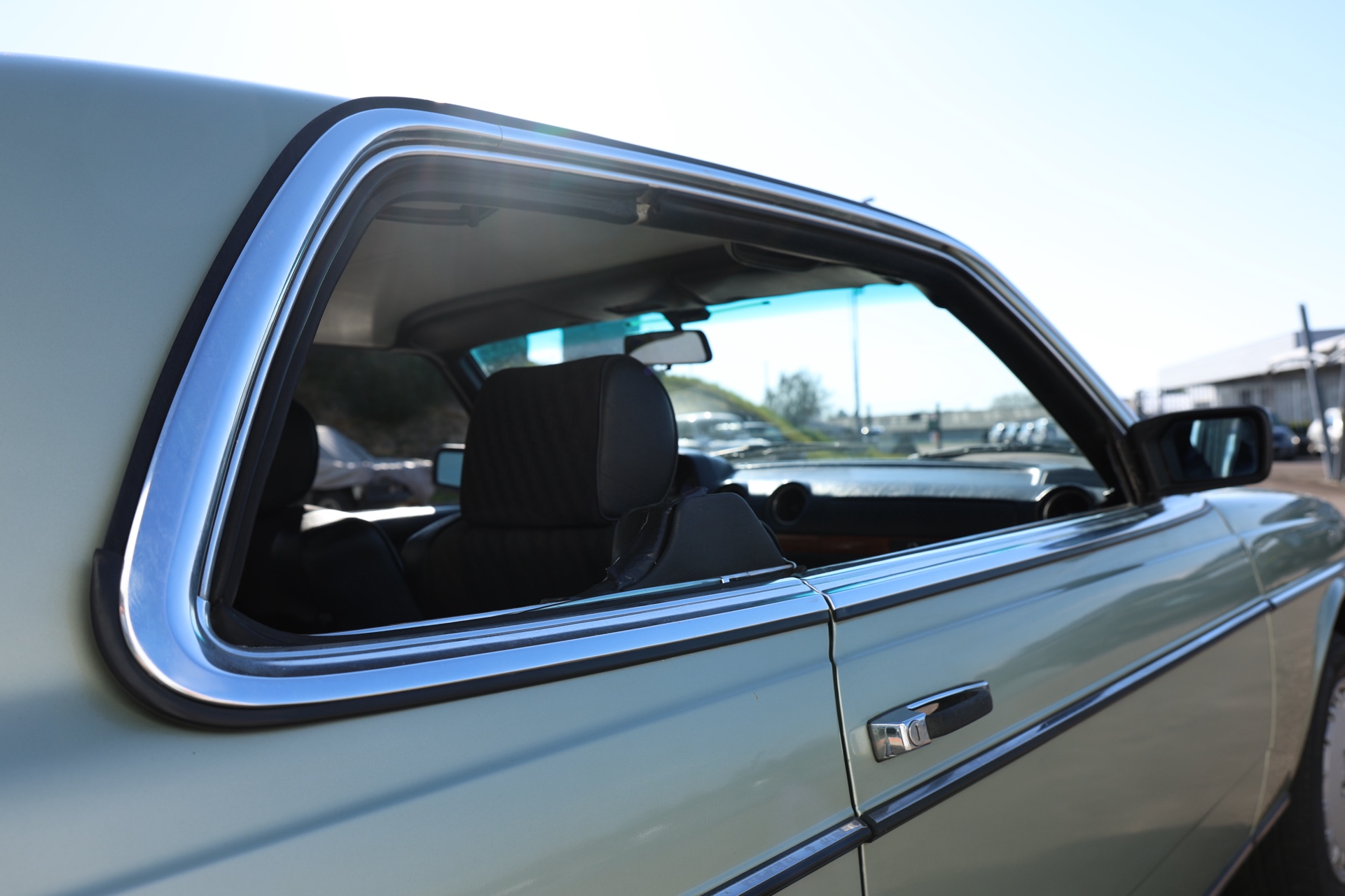 Notre exemplaire se présente dans son jus ; sellerie tissu Amaretta et simili cuir noir, tableau de bord complet non fissuré et boiseries en bon état ; un confort typiquement Mercedes des années 80. Un coupé confortable, spacieux et ultra fiable.