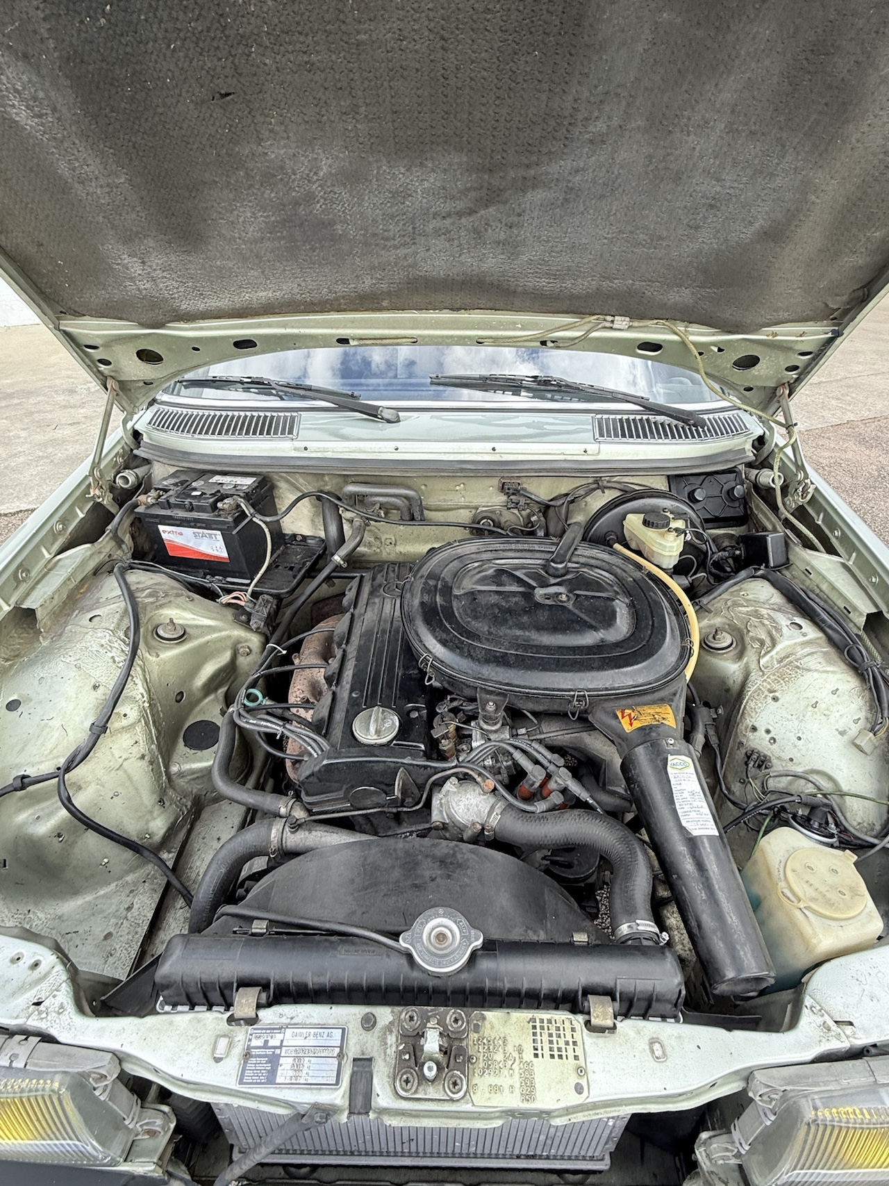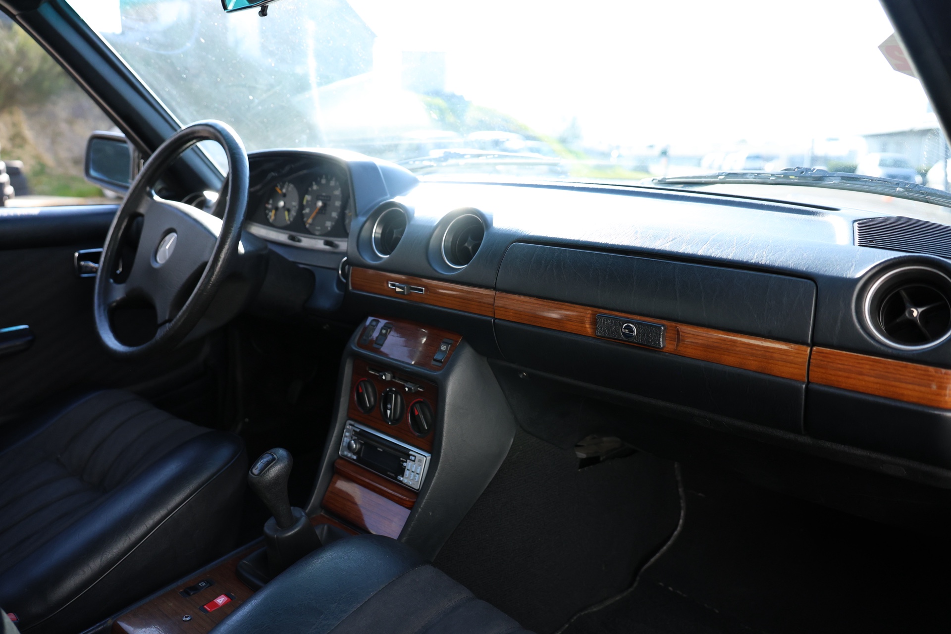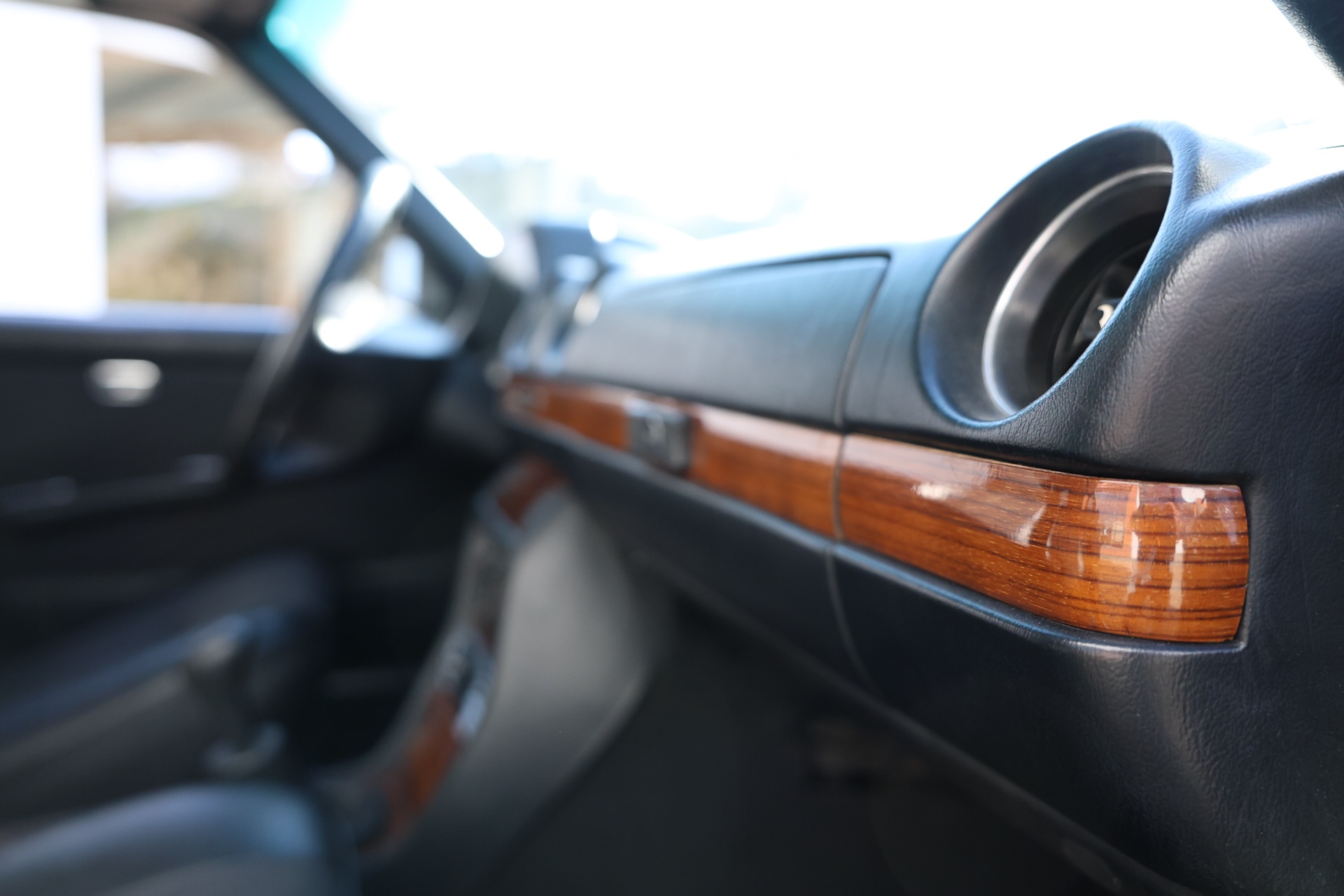 Notre exemplaire se présente dans son jus ; sellerie tissu Amaretta et simili cuir noir, tableau de bord complet non fissuré et boiseries en bon état ; un confort typiquement Mercedes des années 80. Un coupé confortable, spacieux et ultra fiable.